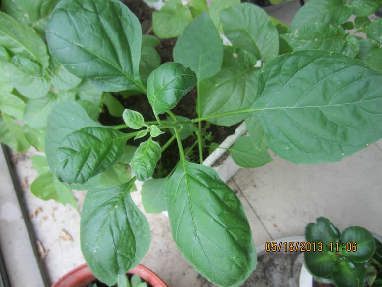 请大家鉴定一下这是什么植物。这是我种土豆的泡沫盒子里长出来的,现在已经长很高了,我说是辣椒,但我老公说不是,他说有可能是向日葵,可是我们重来没有种过向日葵。发上来让大家鉴定一下。谢谢! IMG_1897.jpg |