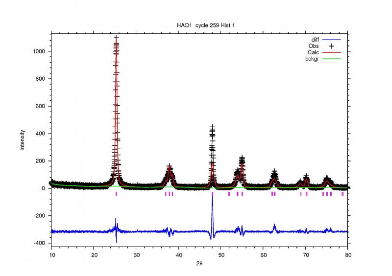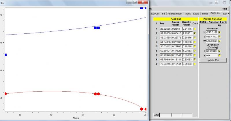 如图,是我拟合的结构,Rw=0.2186,很明显,计算的半峰宽太大导致拟合结构很差。不知道该怎么修了,求大牛帮忙,万分感谢。