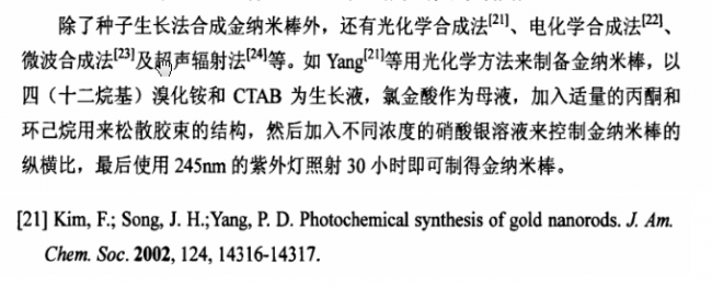 谢谢!你的意思就是说用带巯基的氨基酸作为还原剂吗?还是合成纳米金后在加带巯基的氨基酸进行修饰使得金颗粒由原来的负电变成正电荷呢?有相关的文献吗?第一次合成金,不太懂,文献上一般都用柠檬酸钠作为还原剂跟稳定剂,很少用CTAB作为稳定剂,有的话合成的金的颗粒也是小于10nm。可是我需要合成13-30nma范围内的金颗粒。