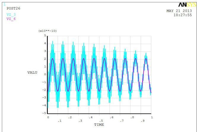 ANSYS里面直接提取节点速度和提取节点位移之后求导得到的速度两个有没有区别?下面的图中,青色为直接提取的速度,紫色为对位移求导之后的速度,为什么两者不一样?看到有人说是直接提取速度和加速度的功能是后来的版本新增加,看图片感觉像是平均了一样,原理上有什么不同呢?
