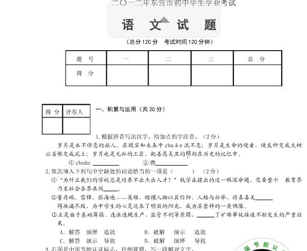 本内容由用户自主发布,如果其内容涉及到知识产权问题,其责任在于用户本人,如对版权有异议,请联系邮箱:xiaomuchong@tal.com - 附件 1 : 2012年东营市中考语文试卷及答案.doc