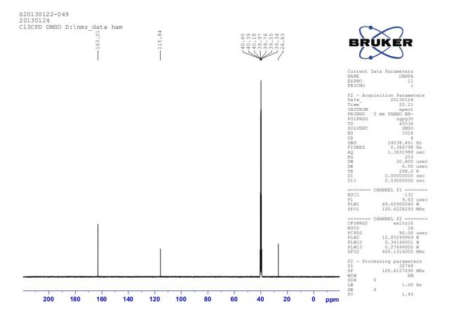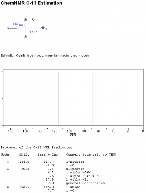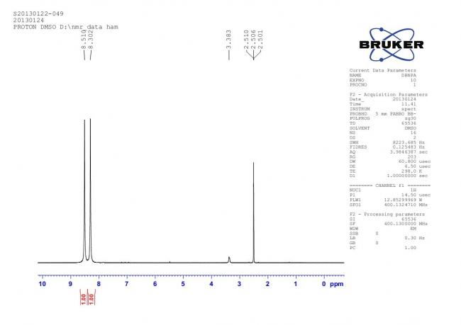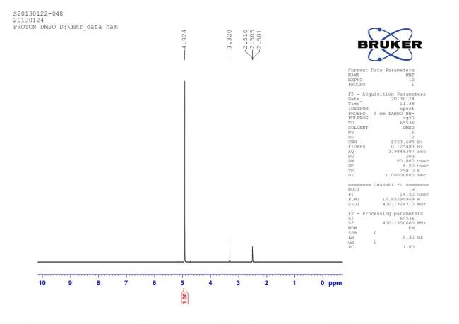求帮忙核磁图谱分析一下,产品的纯度,以及每个峰所对应氢或碳。非常感谢! 1、NCCBr2CONH2的氢谱和碳谱 2、CH2(SCN)2的氢谱和碳谱 1氢谱.jpg 1碳谱 .jpg 2氢谱.jpg 2碳谱.jpg |