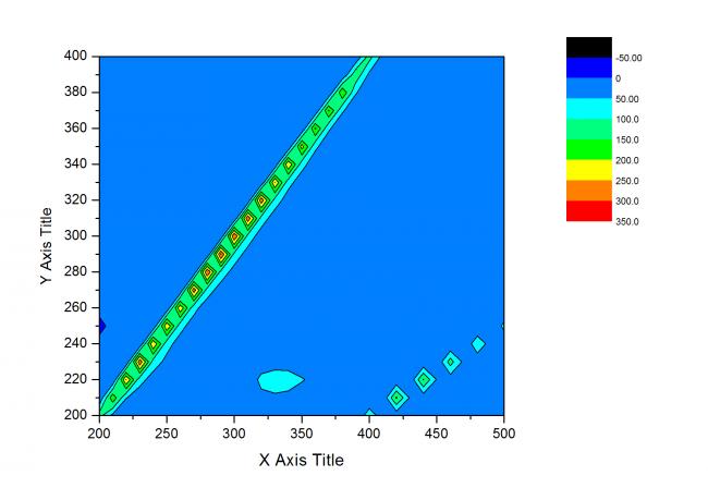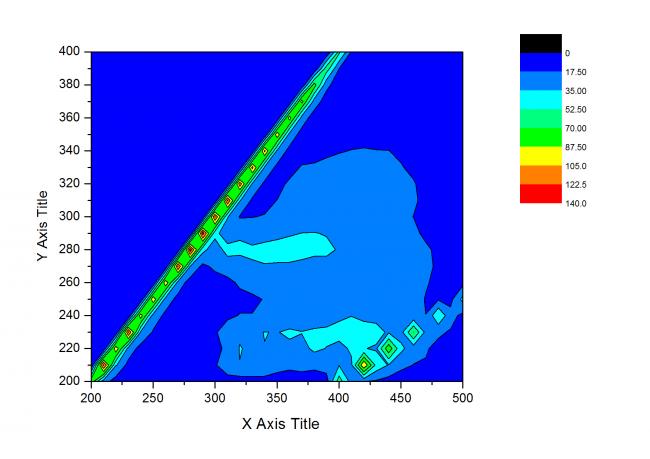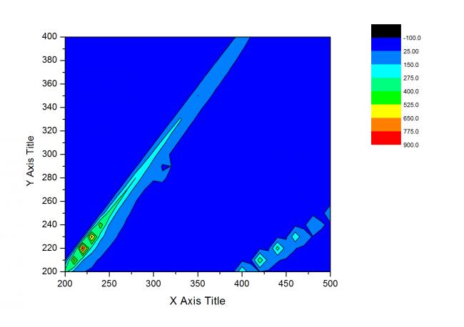 同学你不会是江大的吧?你这是三维荧光光谱中的等高图,不过你画的有些粗糙,如果是origin画的,可以选用两条对角线分别为一级瑞利散射光与二级瑞利散射光,两者之间的指纹形状的就是物质发出的荧光,通常是受污染水源中的有机物产生的,一般来说,纯净水是没有荧光的,只有拉曼,也就是说,水的三维光谱除了两条瑞利线和一条拉曼线,应该没有荧光出现。但我感觉奇怪的是,你的图中水的拉曼怎么没测出来,不过这也可能跟测量仪器的灵敏度有关。