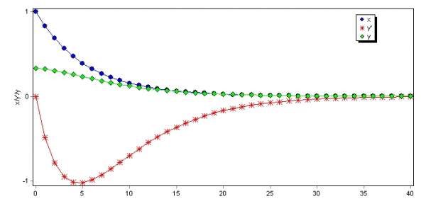 现在需要解一个二元二阶的常微分方程组,想用四阶龙哥库塔来解,刚接触Matlab, 希望能得到大家帮助,万分感谢! 我想得到的是数值解,z-x-y, z= 0-1, (原来曾用excel 的solver来解,当时是猜测y0的初值) 方程: [ Last edited by chemwayne on 2013-5-23 at 08:43 ] |