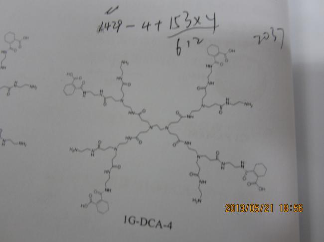 最近,研究师姐合成的酸酐取代的一代PAMAM的自组装情况。本人对自组装不甚了解,希望各位牛牛们替我解答下。 该酸酐取代的PAMAM的分子结构如下 想知道他在磷酸盐缓冲液中的自组装情况 IMG_2654.JPG |