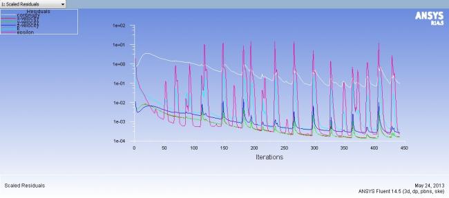 各位,请教一个问题,模拟所用的网格采用icem进行混合网格处理,如下图1、2 边界条件: 大圆柱底部速度进口,上部压力出口 小圆柱速度进口 问题:残差曲线如图3所示,请教各位,这主要是什么原因? 六面体网格质量>0.8,四面体网格质量>0.4,混合处理后质量就很差,出现质量小于0.1的网格,主要在四面体与六面体交接的interface上。 图1.jpg 图2.jpg 图3.jpg |