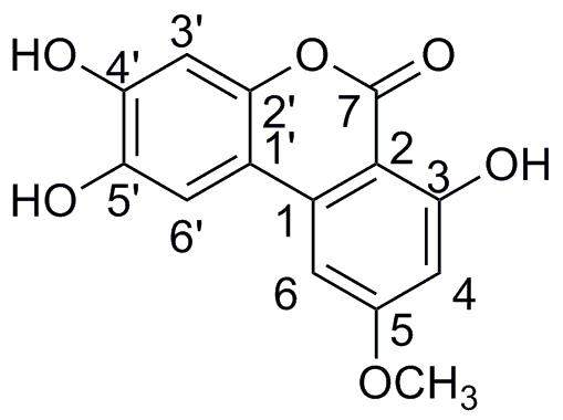 这个化合物(见图片),chemdraw自动命名为:2,3,7-trihydroxy-9-methoxy-6H-benzo[c]chromen-6-one,但我想根据我的编号(见图片)来命名,请教高手这个该怎么命名? 化合物结构图.JPG |
