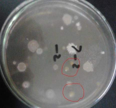 YPDS(Zeo+)平板上长了杂菌,跟酵母类似,但不知道是什么菌。