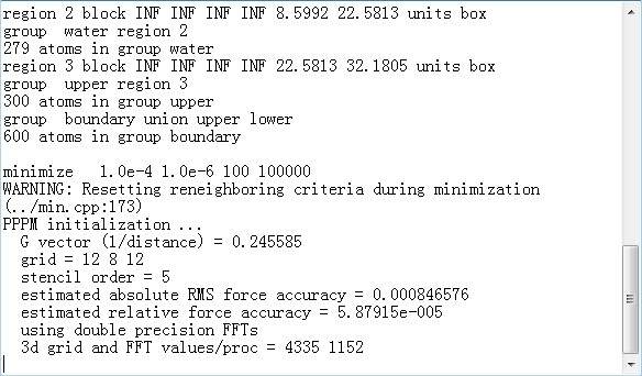 我在做水作用下的摩擦模拟,采用了tip4p模型,在lammps中用了命令lj/cut/tip4p/long,在运行时log文件说缺少kspace style,我就用了kspace style pppm 1.0e-4,结果出现了图中情况,请大牛们指点 Q%17OUB(N6{)S%~GD~URV%H.jpg |