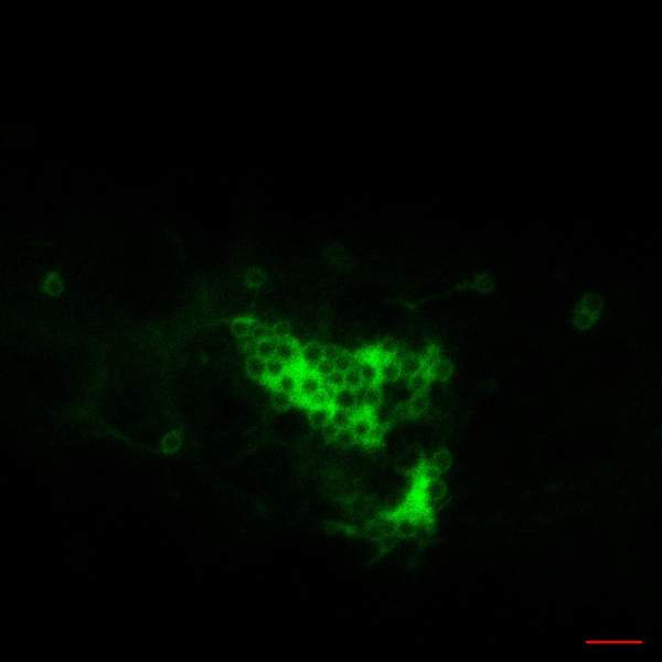 共聚焦显微镜下是看不到亚细胞水平的,你观察到的是一种特殊细胞,这种细胞是具荧光的。 你观察到的这种荧光细胞是否与你转入基因相关也是不一定的,可以观察一下对照的洋葱表皮是否具有同样的特征。