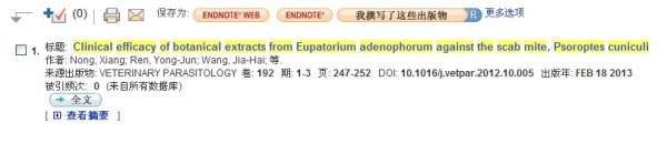 麻烦各位虫友帮查询一下这篇文章的收录情况嘛,谢谢了。 Clinical efficacy of botanical extracts from Eupatorium adenophorum against the scab mite, Psoroptes cuniculi [ Last edited by cxksama on 2013-5-27 at 15:07 ] |