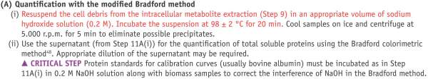 最近做代谢组实验需要算相对生物量,一篇nature protocol 上用的braford法测定细菌可溶性蛋白浓度来推算,但是对他的方法不是很懂,如图红色部分,加NaOH是为了裂解细菌吗?为什么还要煮呢?新手,请大家帮帮忙 braford.jpg |
