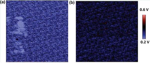 文献中使用KPFM(开尔文探针力显微镜)测量表面电势,得到如下所示的图。