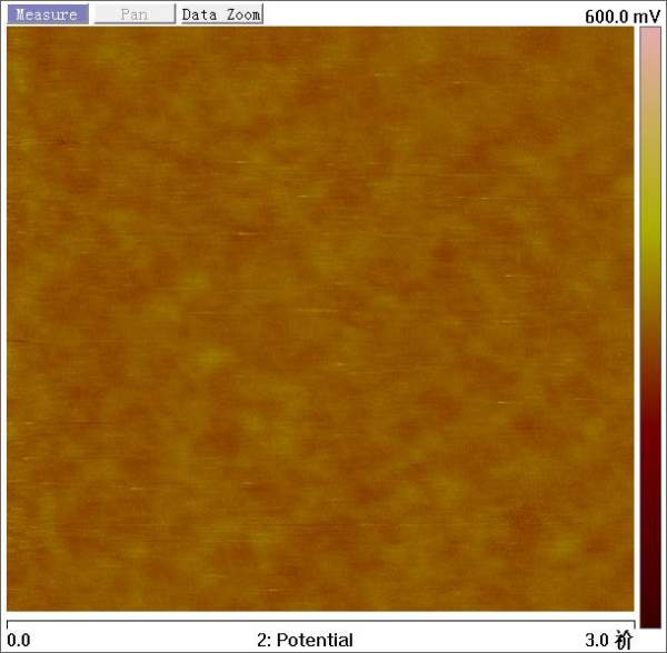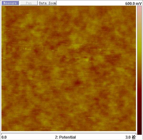 我也做了电势分析,使用与AFM相同的仪器的Potential模式进行测量,据测试的人说就是KPFM,可是得到的图和文章中完全不一样。谁能告诉我我这个电势图是KPFM吗?怎么样分析?怎样去求平均电势?
