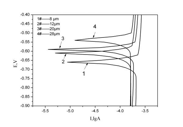 316L不锈钢纤维多孔材料在盐酸中腐蚀的电化学极化曲线