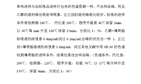 求助师兄师姐,关于气相色谱测薄荷脑只出溶剂峰,不出样品峰的问题?(急)已有1人参与