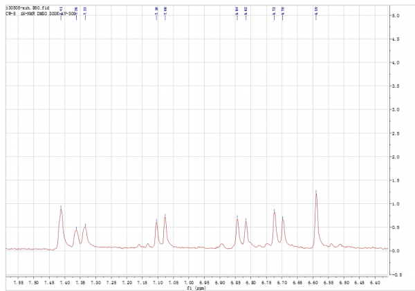 1, 氢谱看峰都在6.6到8之间,应该是苯环上的氢么?
