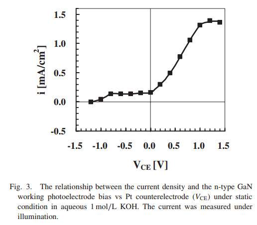 关于GaN的光催化水分解的图,看不懂啊,电压-电流曲线是通过直接CV扫描出来的吗?怎么不像呢,请问各位师兄,师姐,老师了。哎,刚接触电化学有很多不懂啊。这幅图是怎么通过电化学工作站测试出来的?金币不多,谢谢了。 1.jpg |