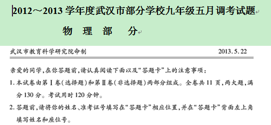 本内容由用户自主发布,如果其内容涉及到知识产权问题,其责任在于用户本人,如对版权有异议,请联系邮箱:xiaomuchong@tal.com - 附件 1 : 2012~2013学年度湖北省武汉市部分学校九年级五月调考试数学试题(含答案)).doc