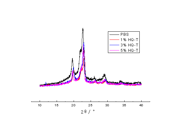 这是添加一定量的黄芩多糖色素对PBS结晶性的影响 ,XRD图,谢谢!