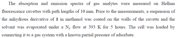 求助,如图片中所示, CO2,CO2/CH4,CH4气体吸附样品的荧光光谱分别在1 bar CO2,1.5 bar CO2/CH4,1 bar CH4的氛围下测得。请操作过荧光测试的高人赐教这个大概是怎么操作的,是不是将吸收池置于相应气体氛围内,保持密避测得的。这个密避装吸收池置容不容易实现。 不知道我说清楚了没有 ![]() 图片2.png 图片1.png |