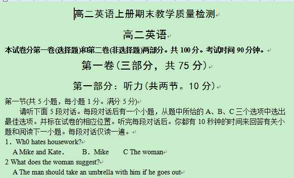 高二英语上册期末教学质量检测 [ Last edited by zhweijun88 on 2013-6-2 at 00:29 ] |