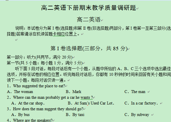 【高二期末】高二年级英语上册期末质量评估试题14 [ Last edited by zhweijun88 on 2013-6-2 at 18:21 ] |