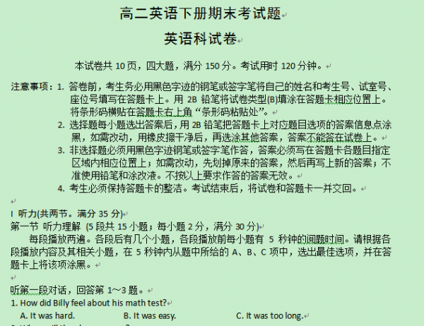 【中小学类】山东济南高二英语下册期末测试卷03