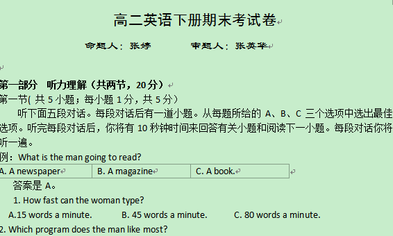 【高二期末】高二年级英语上册期末质量评估试题15 [ Last edited by zhweijun88 on 2013-6-2 at 18:29 ] |