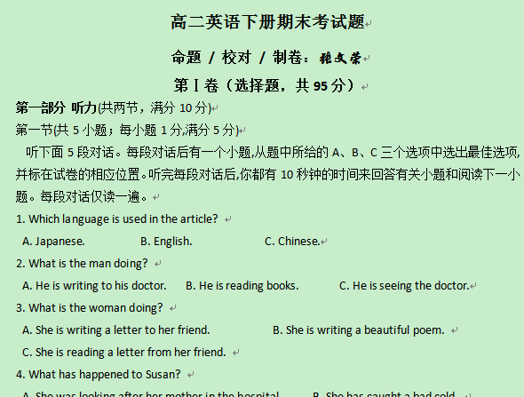 【高二期末】山东济南高二英语下册期末测试卷04 [ Last edited by zhweijun88 on 2013-6-3 at 00:11 ] |