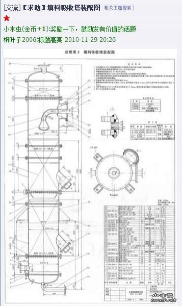 各位前辈,小弟毕业设计核心设备是吸收塔,但是没有参考的资料,谁知道这个图是那本书上的附录3 ,但是图太模糊看不清,所以没法用cad画,谁可以告诉我这是哪个书的附录三,当然要是有这个图的dwg文件,小弟更是感激不尽,金币不多,忘前辈们帮忙。谢谢。 1111111.jpg |