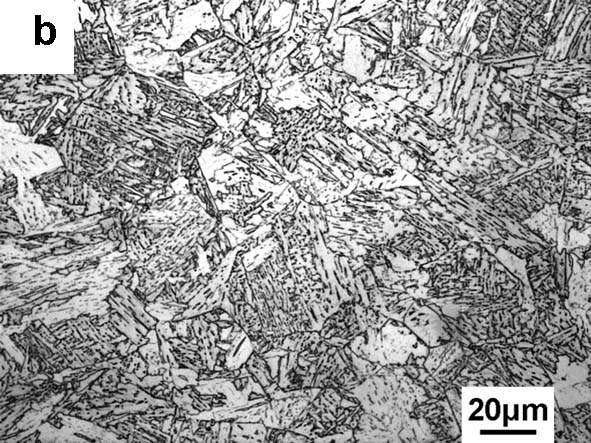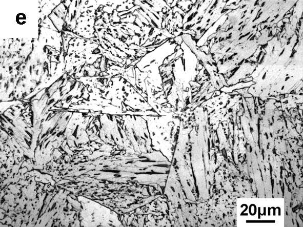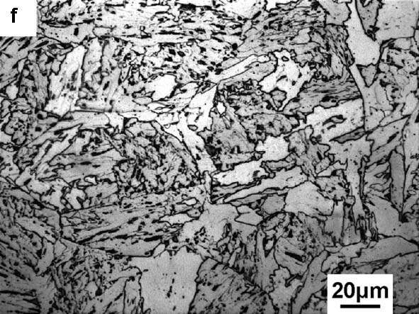 以下为不同条件下X80管线钢焊接粗晶区的金相,对于贝氏体铁素体。针状铁素体,粒状贝氏体等几个概念比较模糊。求各位帮忙看看下面的组织是什么? 图片旁边的括号内为本人认为的组织,还请各位赐教。多谢啦。。。 1 ( 贝氏体铁素体+少量M-A) 2 (贝氏体铁素体+部分粒状贝氏体+少量M-A) 3.jpg (粒状贝氏体+少量M-A) 4.jpg (粒状贝氏体+少量M-A)感觉也有少量 准多边形铁素体,但是不确定?? 5.jpg (粒状贝氏体+少量准多边形铁素体+少量M-A) 6.jpg (粒状贝氏体+准多边形铁素体+少量多边形铁素体+少量M-A) [ 来自小组 材料家族 ] [ Last edited by unimaster on 2013-6-3 at 21:54 ] |