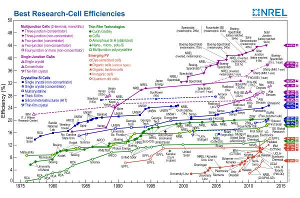 太阳能电池光伏效率进展 图表Photovoltaic efficiency_chart [up to 2014/03]