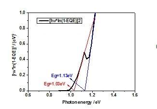 有paper提到,根据EQE的测试结果,利用[hv*ln(1-EQE)]2 vs. hv曲线,做切线即可得到吸收层薄膜的Eg。 1. 这个物理意义如何解释? 2. 如果曲线如下图,怎么解释? EQE -- Eg.jpg |