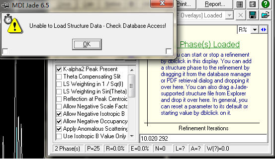 问题1、在使用jade做wpf精修全谱拟合时,软件相继弹出了下图1 2的对话框,请问这是什么原因?该如何解决? 问题2、如何才能让图3中的R值(误差)变小? 问题3、如何将精修后的数据输出保存为“txt”格式? 请各位大神不吝赐教,不胜感激! 1.png 2.png 3.png |