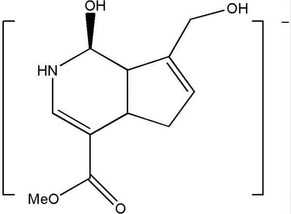 我最近做了栀子苷的代谢(结构式如图),代谢产物中有一个分子离子峰为m/z376,选用的事负离子模式,最后得到的碎片有:332.7,224.2,210.0,149.6,132.4,110.3,78.5,预测224为苷元上的O变成N了。求哪位大神帮忙解答一下376是什么结构!谢谢!