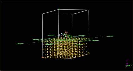 我做的是有机小分子和金表面的相互作用,对模型结构结构优化后先用500ps NVT平衡,后用5ns的NVE动力学分析数据,得到的MSD图很难看,后来将动力学时间增加到15ns,结果仍然不好,体系见下图,求高手解惑