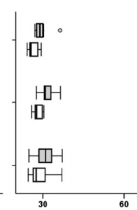 最近需要箱线图展示一组数据,发现sigmaplot做出的是均等排列的箱线图,不知道那种分组的箱线图如何实现,请做过的大侠指教。示意图如下,分组即可,横纵坐标互换没关系: