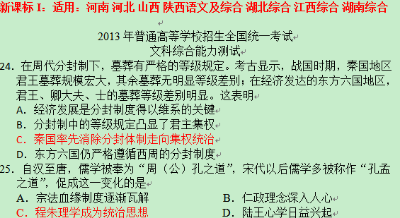 【中小学类】2013年全国新课标I卷 文综卷 历史试题及答案