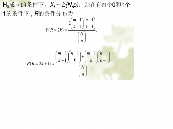 关于游程检验中游程R的条件分布公式 不大明白括号中表示的含义?