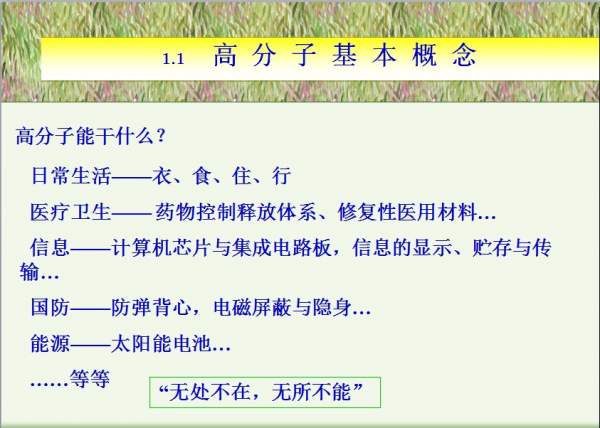 【课件】高分子科学基础 材料科学与工程导论(陈克正) 精细高分子合成与性能(张宝华)