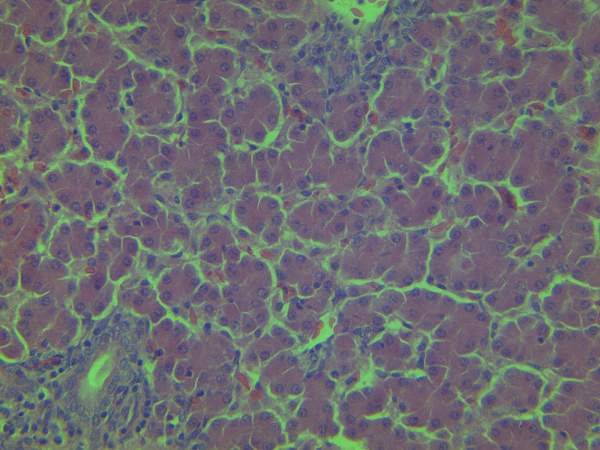请问这张HE染色图,肝脏发生了什么病变,谢谢