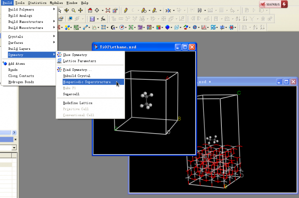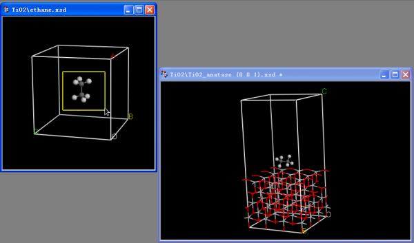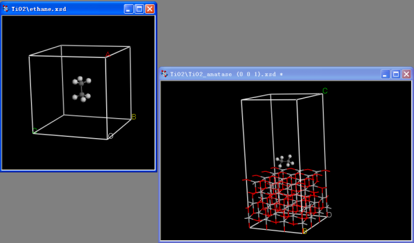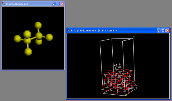 假设LZ建立分子和表面两个模型分别在1.xsd和2.xsd中。 1, 打开1.xsd,选中整个分子模型,然后Ctrl+C,或者右键选择复制; 2,打开2.xsd,直接点Ctrl+V,或者右键选择粘贴; 3,不要点其他键的前提下,可以看到拷贝到2.xsd的分子依然是选中状态(全部显示为黄色),使用MS中的移动工具,将其移动到需要的位置(当然,也可做旋转)。 |