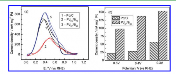 图1的氧化峰没有全出来而已,只能考查0.45v之前的电流。