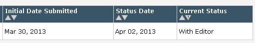 各位大侠,本人于3月通过EES投稿,到现在6.13还是with editor的状态。期间写了两次email给主编均未收到回复。请问怎办?谢谢