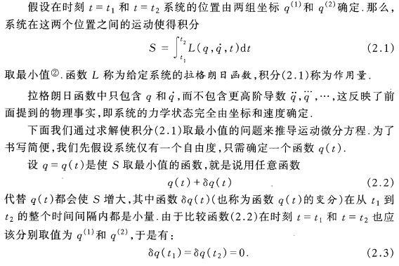 打了个电话,没注意审查,错误的记号一大堆 detla(x)=delta(x),d(xa)=【delta(x)|t=ta】; 【第一项是关于detla(x)的线性积分式,次项是d(xa)的“高阶无穷小”】应该是 【第二项是关于delta(x)的线性积分式,因为包含Lagrange方程,所以是delta(x)的“高阶无穷小”,因而对于d(xa)也是小的】 d/dx {detla(x)}应该改为d/dt {delta(x)} integral 是ta到tb的定积分,DL/Dx是偏导数, 分布积分是关于delta(x‘‘)做的,delta(x‘)不动它,这样能再次得到Lagrange方程,然后再消去 最后,两点边值问题是对于x(ta)=xa;x(tb)=xb的Lagrange方程而言 |