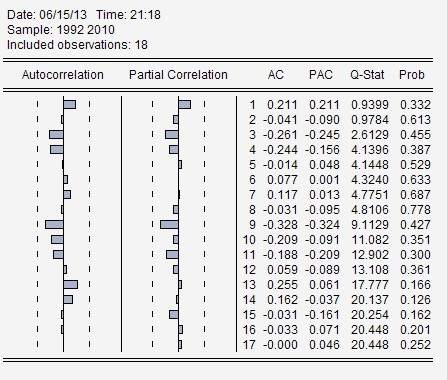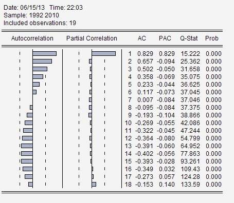 用Eviews对ARIMA模型建模,得到一阶差分自相关与偏自相关图,麻烦给看看这个图下一步应该怎么做,要不要改为ARMA模型?谢谢