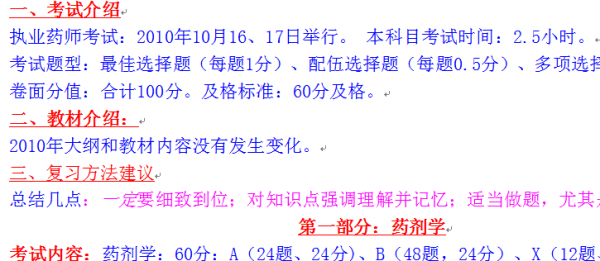【转帖】2010年执业药师资格考试药剂学知识考点总结