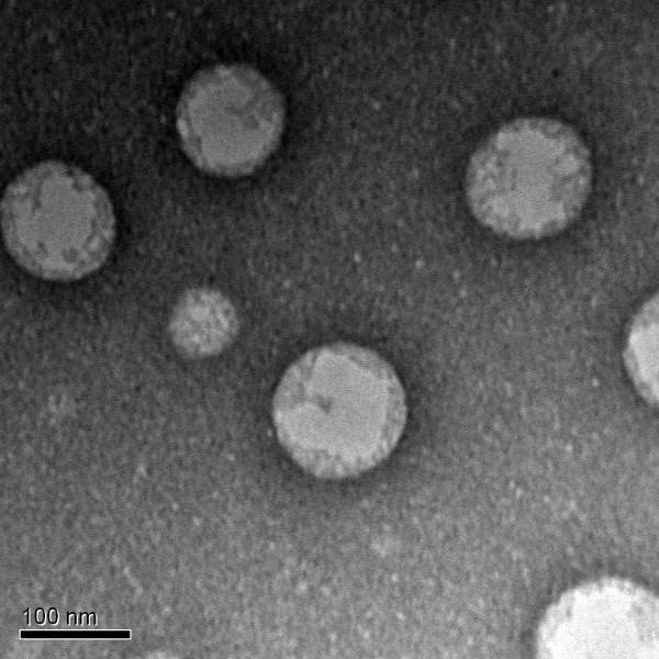 如图,我做双层平板获得了空斑,然后挑取空斑于SM buffer中,在透射电镜下观察到了大量下面图片中的形状,很是迷惑。TEM观察是用的醋酸双氧铀负染的。请教相关方向的大神指点!多谢!