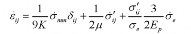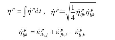 最近开始做UMAT涉及到CMSG理论,本构方程如下: 跟经典J2流动理论相比,相当于塑性模量发生了变化: 因此在编写UMAT的时候,需要增加一项等效塑性应变梯度,计算方法为 看了很多文章,在UMAT里面可以通过这样来实现: 根据同一个单元内部各个积分点上的塑性应变增量 ,通过形函数和差分得到等效应变梯度的增量,再累加形成总的等效应变梯度。 这个有限元的实现过程不是很懂,征求高手们提一些建议。 |